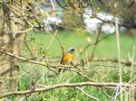Decided to carry on with my morning visits this morning and today it paid off. Arrived at 9:45 and went straight to that hedge to check and there it was. Steve popped down to check for one without even seeing that I'd spotted on. It flew over to the tree in the middle of field and while we were watching what we thought to be the silhouette of the redstart, steven pointed out that this was a female wheatear and the redstart was further down in the tree. The wheatear left over the trees while the redstart went over to the other row of hawthorns on the other side of the car park but went back the hedge next to the school. I left at 1 with phil, pete and chris still watching it.