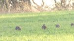 The total of White-fronted Geese now 30, as some were hidden in dips in the field. Just disturbed by a low-flying helicopter, they flew west but circled back around on to Lightshaw