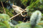 The largely heather covered field on the opposite side of the lane to Wilderswood was alive with small birds at one point. Willow Warblers appeared to be in all the small bushes in the heather field, and on the tops of the larger trees in Wilderswood. Lots of aerial flycatching sorties took place, and when some of Willow Warblers began doing their flycatching sorties from the tops of the heather, some Stonechats also joined in. For a few minutes the scene was almost magical, but then as quickly as they first came the Willow Warblers moved on and the Stonechats carried on just chasing each other about.