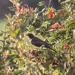 Just a single Kestrel and a couple of crows braved the strong NWesterly blowing over the moor. Whilst 3 female Bullfinches sheltered in the plantation and a single Fieldfare flew low across Matchmoor Lane.
