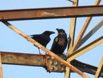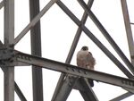 Peregrine Falcon on various pylons, hassled by a persistent Crow