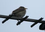 Made the short 17mile drive to Timperley for c.9am this morning and wasn't disappointed. Withing about 15mins of arrival the juvenile Rose-coloured Starling showed on TV aerials in it's usual area. The weather was horrid, but there are areas where you can shelter under overhanging trees & keep pretty dry. Quite a few folk were there, lots of birding pals, some of whom had been there for at least an hour and a half before it showed. Maybe arriving bewteen 8.30am-10am would be a good tactic for future visitors. Everyone who was there and who arrived whilst I was there had views of the bird, I volunteered up my scope for anyone who hadn't seen it yet or had only used bins and everyone got decent views. We all kept out of the way and got no adverse reaction at all from residents at all, quite the opposite with a few friendly enquiries asking if we had seen the bird yet. (low res handheld phonescoped record shot attached)