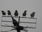 Tried again today. None of last night's forecast sun but at least it didn't rain. More birders seem to be turning up (about 20) which appeared to make the Rose-coloured Starling a little nervous as the 4 visits to the aerials/roof top were only short ones. It did linger, preening, on top of the nearby Lombardy Poplar allowing more distant photos.