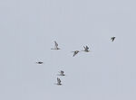 This afternoon during the downpour from 3.30pm, 9 Black Terns (1 adult) were feeding amongst the boats showing well until 3.50pm when a Peregrine harassed them and they spiralled up and flew west.
