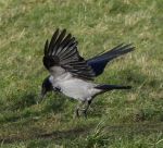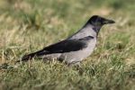 Hooded crow still present this afternoon opposite the Eagle and Child. There was no sign of it when I got there so I went for a walk along the perimeter fence of the racecourse and eventually found the bird feeding with a Carrion Crow on the racecourse (and hence in Merseyside). No sign of any Brambling along the hedge there so I headed back to my car and found that the hoodie had returned to Ashton Heath and was showing well in good light quite close to the footpath which runs along the edge of the woodland. I took a few photos and then returned to my car and sat and waited for it to come closer. which it usually does. No chance of that though, a photographer with a big lens and no binoculars arrived and walked straight across the grass towards it, chasing it for a while before eventually the bird flew over the pub and disappeared. I took a few photos of the photographer for future reference and then left. A raven flew over calling while I was watching the photographer, but he didn't look up, probably doesn't know the call of a raven. Six species of corvid here today, I was only missing jay and chough.