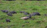 On the field adjacent to the sub station, had a Leucistic starling in a flock of aprox 100. Got my heart racing until I had a closer inspection! Managed a few record shots of it until a sparrowhawk ploughed into them all and they dispersed in terror