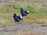 9+ Black Grouse on the lek near road, with all people there following the RSPB code of conduct as far as I could see...4 cars in total. They were giving a great display for a good hour.