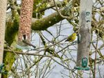 The weather was distinctly wintery at Llanrwst when we arrived, to news that a Hawfinch had been seen about an hour earlier "across the river". So we crossed over and followed the river walk to the public car park. Viewing from here J R spotted one "across the river!" flying back the way we had come towards the tea rooms. By the time we got back there, a group were watching up to 4 birds in trees beyond the public footpath west of the river. Not the clearest views but good enough for a positive i.d.