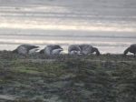 6 BARNACLE GEESE with Pink-footed Geese on the Saltmarsh