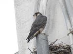 A pair of Peregrines were on the CIS tower today. I was not able to confirm the identity of the individual birds. I would dearly love to know which male is with the female. I have heard 3 stories about what happened to last year's male which was taken into care. Was it released, did it escape? Sadly I was in hospital so could not monitor the situation.