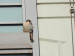A pair of Peregrines were on the CIS tower today. I was not able to confirm the identity of the individual birds. I would dearly love to know which male is with the female. I have heard 3 stories about what happened to last year's male which was taken into care. Was it released, did it escape? Sadly I was in hospital so could not monitor the situation.