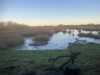 Buzzard above Pumphouse Pool hovering a lot like a big Kestrel, very strange to see over water, then it dived down to the edge environs where the four fence posts are protruding into the water on the North sie and emerged carrying something long (1m) and thin (5cm) in its talons - eel?.