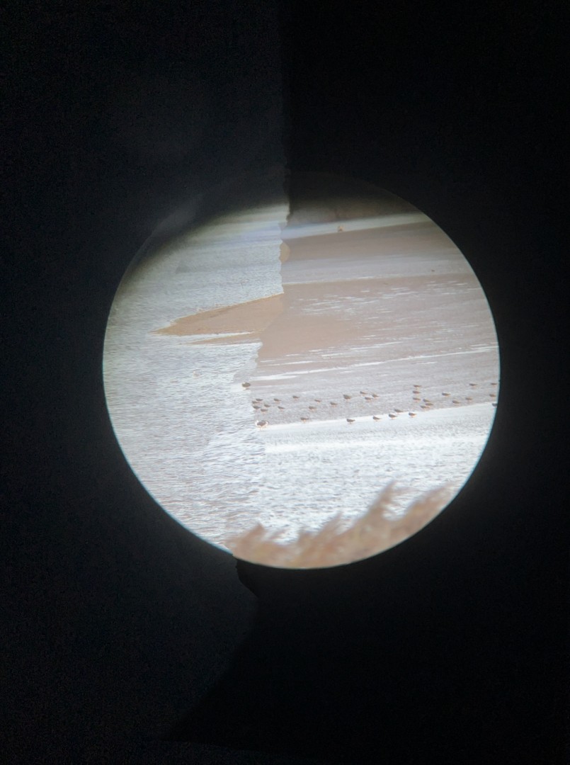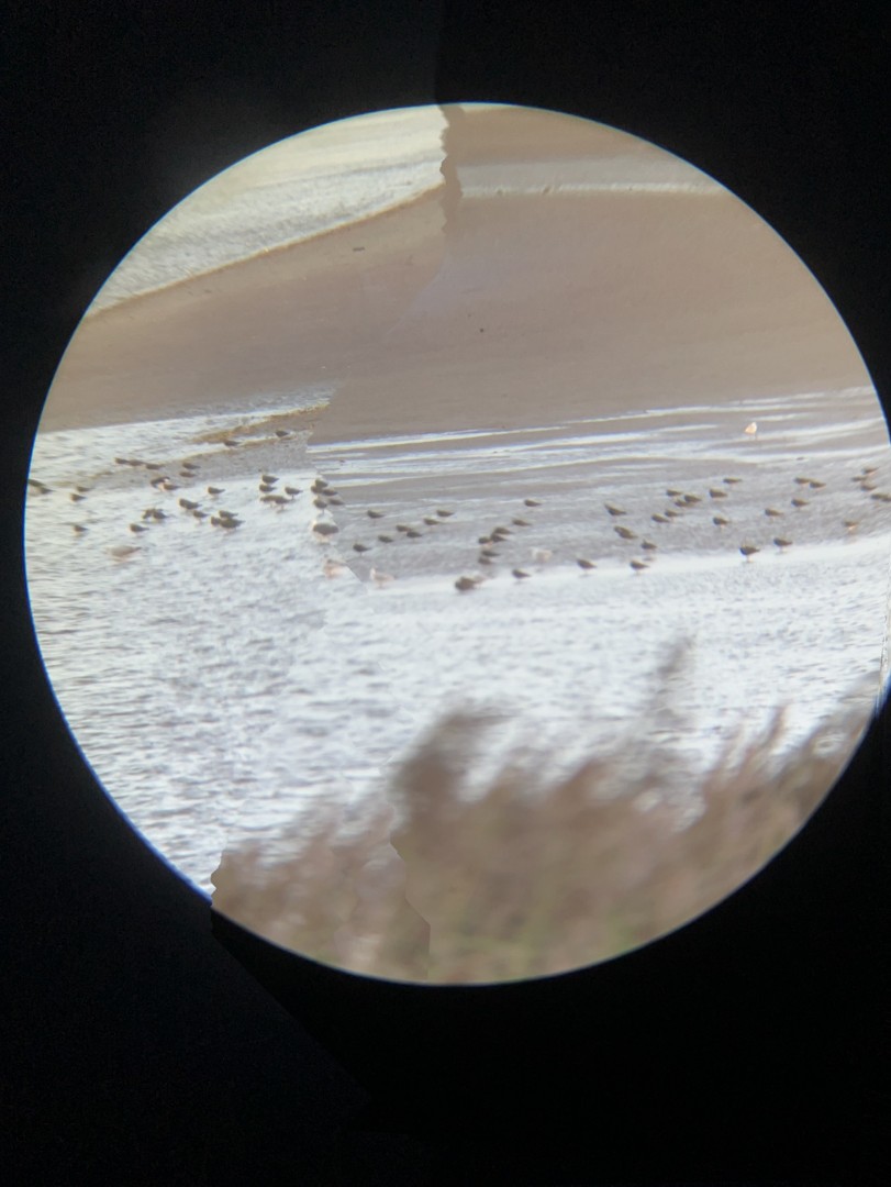 Two Redshank, 79 Curlew (plus 4 over as I walked down the canal), 454 Lapwing, two Black-tailed Godwit, paucity of gulls made up by juv Kittiwake sat on the bar viewed from Halfway House. Attempts at digiscoping with an iPhone even with a cradle an absolute fail, presume the wind shear on the tripod produced these weird half photo effects?