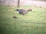 The previous 2 hours had been spent at Piling Lane Ends searching for the goose without success. However a good supporting cast included female Common Scoter, Peregrine Falcon, Red Breasted Merganser, 100's of Pintail and Shelduck, many Pink Footed Geese, Common Snipe, 100's of Lapwing, Curlew, Redshank, Dunlin and Sanderling, 3 Little Egret, 10 Skylark and Linnet flock. 2 White Fronted Geese were with Pink Footed on fields by car park.