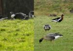 A 3 hour wild goose chase today eventually paid dividends with the Red Breasted Goose being seen from Eagland Hill from 14.55 to 15.10. With 100's of Pink Footed and Greylag Geese and 5 Eurasian White Fronted Geese. Arrived there at 13.45 to be told the bird was out of site, but after an hours shivering all the geese were spooked by a microlite and great views were had of it flying and then on the ground.