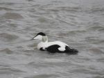 Rossall Point. 2000+ Pink footed Geese. Constant skeins over. 4 Rock Pipits. 2 Stonechat. 1 Wheatear photo attached. 3 Swallows. 1 Chiffchaff. 16 Eider Ducks. Photo of 1 close to shore. Good movement of Meadow Pipits, Linnets, Carrion Crows, Rooks, Alba Wagtails, Skylarks, Thrushes. Not many waders on shore.