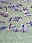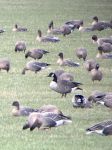 We then headed on, leading another birder, to Pilling Lane Ends where several fields held feeding flocks of Pink-footed Geese. We soon found the field with the most interesting flock in it though, to the north of Backsands Lane. The stand-out bird was an adult Red-breasted Goose which associated loosely with 23 Russian White-fronted Geese. The fields around here also contained large numbers of Curlew and Lapwings.
