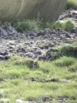 Our final call was at Knott End where we searched the small bay behind the Bourne Arms Pub and the Waterfront Apartments. Here we quickly found the Black Redstart that has been around this winter, the bird being reported as a fem or 1w male (I favour the former myself!). It was feeding well on the rocks around the bay but eventually headed off round the wall & we couldn't relocate it. A walk down the slipway allowed us to scope the distant water filled channels (low tide is a long way out here!!) and a nice drake Eider was found hauled out on a distant sandbank. With a biting cold wind cutting through us we retired to the Knott End Cafe for a hot chocolate before heading off again.