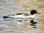 The Shoveler didn't stay long, but yesterday: Goosander 4 (3 redhead, 1 male) Indian spotbilled duck hybrid male still present Heron standing in the top nest at the south end of the island, another on the ground below Blackheaded gulls, Mallards, Tufted ducks, Canada Geese, Coots, Moorhens and 3 Mute swans (pair + 1st winter) as usual. Ringnecked parakeets, Goldcrests and Mistle thrushes very active.
