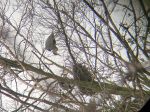 In the snow today: the lake was partially iced, with some Blackheaded gulls floating and others standing on ice. Heron standing on the high nest at the south of the island. Other nests empty, as yet. Pair of Shovelers circling each other in the east channel. Mallards, Tufted ducks, Canada geese, Mute swans, Coot, Moorhens. Ringnecked parakeets over.