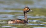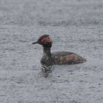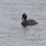 A short walk in the rain around the lodges this morning. A small group of swallows feeding on the Croal below the car park where a grey wagtail was also seen. Not much activity amongst the trees around the lodges on which three cormorants were posing in the middle of the usual collection of coots, swans, mallards and the great crested grebes. Four lesser blacked backed gulls were on the fence posts. The highlight for me was a black necked grebe on the main lodge.