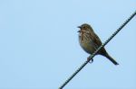 A flock of 16 House Sparrows in a hawthorn hedge along Woodend Lane.