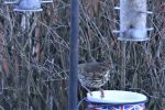 10 Redwing perched on top of the Big Tree, then flew off. At least 2 Fieldfare deep in the Berry Trees with Blackbirds and a further Redwing; all feeding.