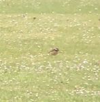 1 Whinchat - male. It spent its whole time whilst watching it feeding off the short mown grass of the model aircraft club field with the two Wheatears.