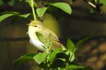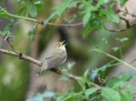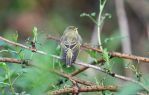 Wood Warbler singing by the steps at Binn Green today. Among 40 species, other birds included 1 Common Sandpiper, 3 Curlew, 1 Cuckoo, 1 Raven, 18 singing Willow Warbler, 2 Siskin, 4 Redpoll and a leucistic Woodpigeon with off-white wings and mantle