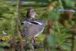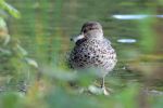 Teal (female)...a nice bird to have on the lake. It seemed healthy enough. At one point it took to flight but because it was behind foliage I couldn't tell if it was unable to maintain lift.