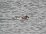 1 male Pochard, plus large numbers of Shelduck and Tufted Duck. 1 white Feral Goose with a Canada Goose companion, which as soon as it landed on the river