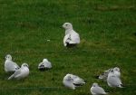 A small group of Lesser Black Gulls plus a couple of adult Herring Gulls settled for a while, and with them a slightly larger immature gull with a pure white head that