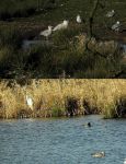 Heading down to Railway Flash and viewing from the downslope of the tip there (this causes no disturbance to the birds on and around this flash) I soon picked up thw 1w drake Scaup (picture attached) that had been found by Andy Goodwin last Thursday. The bird was always on its own, never associating with the Tufted Ducks also on the flash. There was also a stonking great Glaucous Gull by the flash, that because of how white it is, is being aged as a 1st summer bird (picture attached). Also in the same vicinity were the two Great White Egrets that are seen regularly in the flashes recording area (1 pictured, attached).