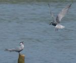 - Whiskered Tern 2, a Lifer for me, and they were showing well when I arrived. One perched up on a post in the pool, the other flying around. Almost a lazy flight but then a split second turn of acrobatics. There was one point when both birds were repeatedly diving into the water. I've included some images that have been cropped as my bridge camera isn't equipped to deal with Tern flight but they do capture some decent features.