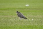 Peregrine juvenile, red ring 5H on right leg (see photo) at the playing fields (present when I arrived) put on a fantastic performance for 40 minutes before flying east over Princess Road into Withington at 12.46. Caught a Woodpigeon, plucked it on the ground and 'toyed' with the Crows.