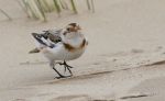 After taking a few pictures, I thanked the guys as the snow bunting made his way through the dunes. I thought I will go ahead of him to sit down and wait, but he was a fast mover- so with little planning time, I sat down on the side of the path and he therefore came amazingly close!!!