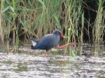 Did the 500 mile round trip with my best birding mate & we saw the Western Purple Swamphen immediately on arrival at its favoured pool, 'South Girder' behind South Hide. This Frankenstein's Moorhen showed well on the back edge of the lagoon in the sunshine giving a few Mallards the frights of their lives as it appeared behind them out of the reeds, very comical! On the same lagoon a Water Rail showed on the reed edge too and a Bearded Tit skimmed over the reeds. From the coastpath viewpoint we watched Spotted Redshank, Bar and Black-tailed Godwits, Avocets and a few Little Gulls on the lagoons. Further round two Stone Curlews showed well on the fields specially managed for them. Nearby a Hobby flew over. We had a good explore of the reserve and added some good non-bird sightings too (see other thread). Great fun in the sun and well worth the effort (just don't mention the M6 ).