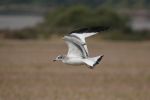 The Sabine's Gull stayed another day so I called in to see it. Mostly it fed over a stubble field, quite close at times and putting on quite a show. It would down to pick insects from amongst the stubble but didn't really land, rather like it would feed picking items off the surface of the sea. Later it did rest in the field for 10-15 minutes but then was off again. It also flew to the estuary and bathed and preened there.