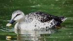 An Indian (Western) Spot-billed Duck (or perhaps Spot-billed Duck x Mallard hybrid) present, unringed with all primaries missing on its' right wing - evidence of pinioning
