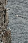 40 puffins were around, with about a dozen on the cliffs and the rest flying about or on the sea, some of the birds on the cliffs were showing incredibly well from the grandstand and barnatt's nab Thousands of guillemots, razorbills, gannets and kittiwakes were flying around and were gathered on the cliffs. I manag d to see about two dozen fulmars, although all of them were flying around and non were on the cliffs. A couple of shags flew low over the sea