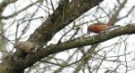 Enjoyed a rare day out this winter yesterday rarity chasing. Whatever I saw in the way of crossbills (more than 35 in all), I just enjoyed seeing them at close quarters, at or near eye-level, and well lit. It was such an invigorating experience, I climbed the track twice! If I had to give the main reason why I saw 'parrots', I'd say tameness, and the preferred food. I have only ever seen crossbills feeding on larch in this country, whereas the parrots, according to the literature feed on pines (chiefly). When I got back to my car the second time, the parrots were feeding on the pine cones in trees directly behind the parking area at 7km. Could have saved my breath! Also, heard a single crossbill singing in the same trees earlier. First time I'd experienced the song.