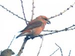 Popped over today to see Crossbills and was well rewarded with approx dozen Parrot Crossbills giving prolonged views as they perched up in the bare trees above their "drinking puddle" and watched as they appeared to take lichen off the bark and ate it? Also a couple of Commom Crossbills came in a gave brief views but did not stay to drink.Well worth the hassle of negotiating the horrendous amount of traffic around Glossop/Mottram.