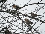 Distant (far NW corner of field) large flock of ~150 mixed finches, mostly Chaffinch, but could just about pick out a couple of male Brambling. Also a few Greenfinch. Nearby a flock of what were likely ~100 Linnet. There could have been Redpoll in there but I couldn't see any at that distance. Also a couple of Buzzard, a few Stock Dove, and a flock of ~20 Fieldfare