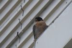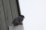 1 Peregrine on the 'Beyond' building today at The Trafford Centre, facing the M60, not its usual side, may have something to do with the weather direction!