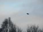 Buzzard with an attendant flock of mobbing crows over the entrance road.