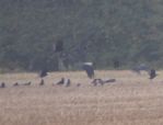 22 Buzzard and a Grey Heron today stood on farmland adjacent to Lady Hill Plantation