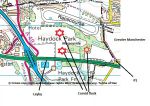 Hooded crow with corvid flock at Haydock Island. Park in layby on west bound A580 and look north towards the race course. The flock can be distant at times. The bird looks to be a pure hoodie to me. These fields are in St Helens, Merseyside,  but they are right on the border of Greater Manchester (see map). Anybody who wants to try to add this species to their Greater Manchester list could do worse than take the first minor road left from Haydock Island when heading east on the A580 and park up immediately and then walk towards the race course following the public footpath (P1 on the map). The fields on the right are in GM, those on the left Merseyside. As far as I know the bird has not been seen in GM so far but the flock does occasionally go missing from Haydock island and these fields look good for corvids.
