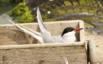 Carl: It is amazing how with all those boxes set up on the pontoons, Arctic Terns chose the exact spot one year on. Actually if you compare the two years photos, they are different boxes but in the same positions. One can see in the 2018 photo the box is falling apart, so they seem to have replaced it - however that didn't deter the Arctic terns.  By the way in the 2018 photo one can just make out the downy chick behind the parent bird.