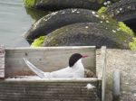 While I was scanning through the gulls, I saw a couple of common tern chicks peeping their heads out of their tyre on a pontoon that was mostly devoid of gulls.