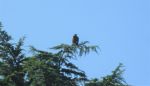 Harris's Hawk in Altrincham - perched in tall fir tree near John Leigh Park on Sunday evening (last seen here in 2021) - Gull and 2 Crows not happy it being there!